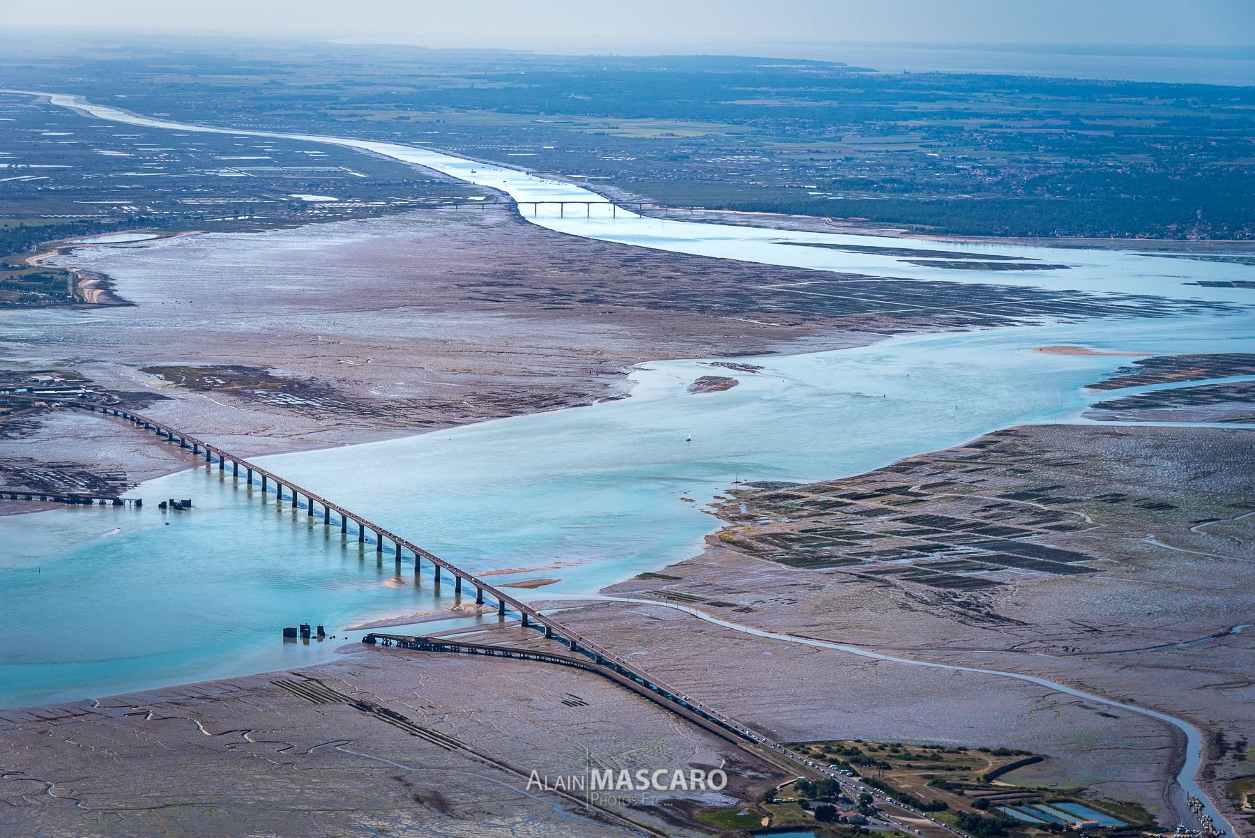 Le pont de la Seudre, à gauche ronce les Bains, à Droite Marennes, en face, Oléron.
